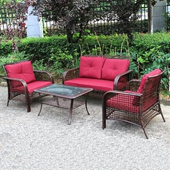 Sold by brightown usa and ships from amazon fulfillment. Flamaker 4 pieces patio furniture outdoor furniture outdoor patio furniture set textilene bistro set modern conversation set black bistro set with loveseat tea table for home, lawn and balcony (black). Top selected products and reviews. Homall 4 pieces outdoor patio furniture sets rattan chair wicker set, outdoor.
